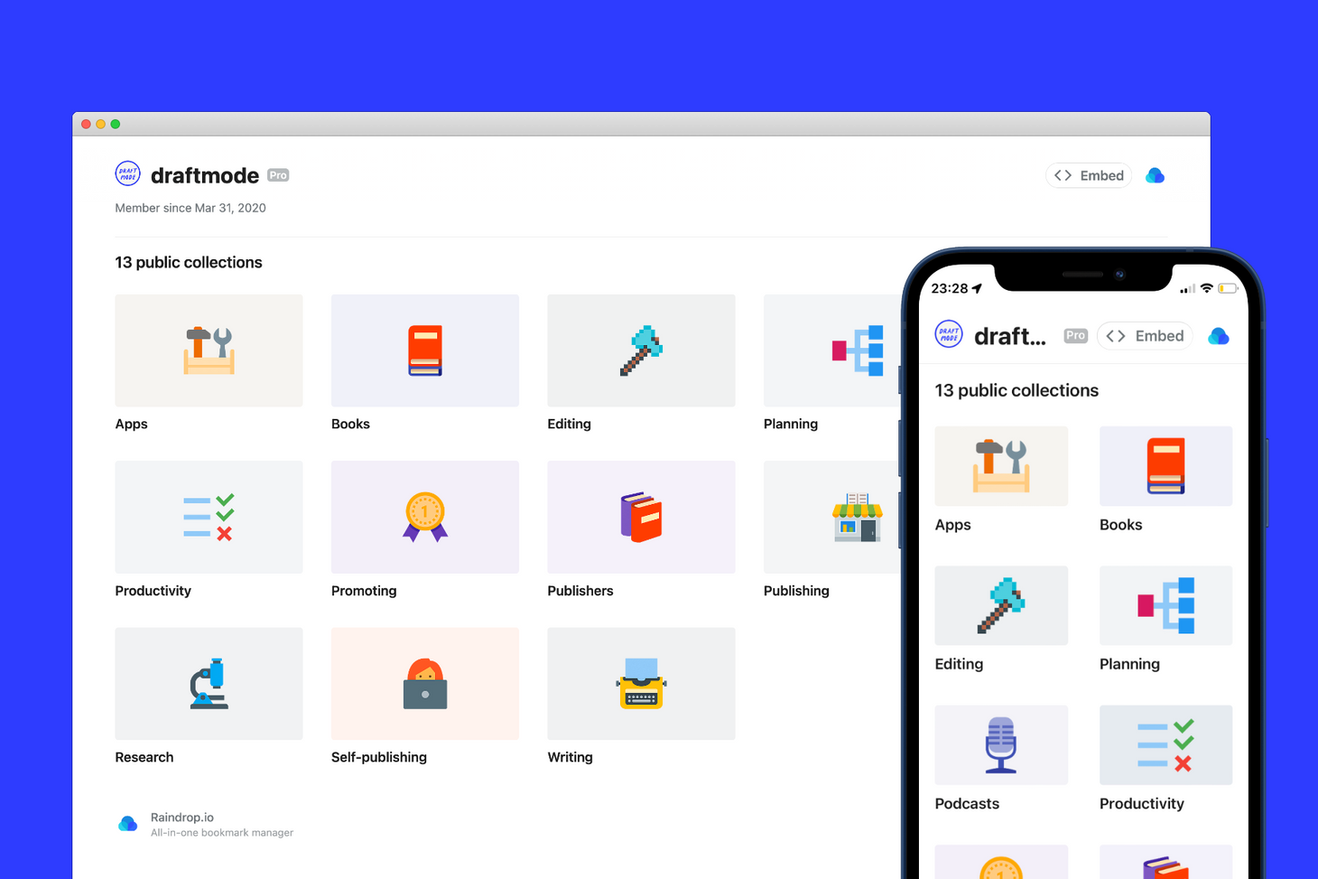 - I'm getting ready to launch Draft Mode Bookmarks. This is the giant directory of writing resources I've built up over the years (and add to every day). I'm slowly tagging everything up so you can easily search and find your way around. There are literally thousands of links!